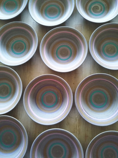 言うは易しで、普段は手で色の違う土を積み重ねて削って出しているストライプなので、量産とは程遠い。